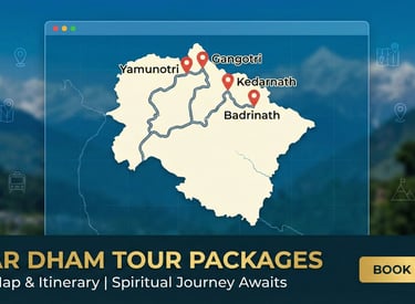 Explore the divine route to the Himalayas' most sacred shrines: Yamunotri, Gangotri, Kedarnath, and Badrinath.